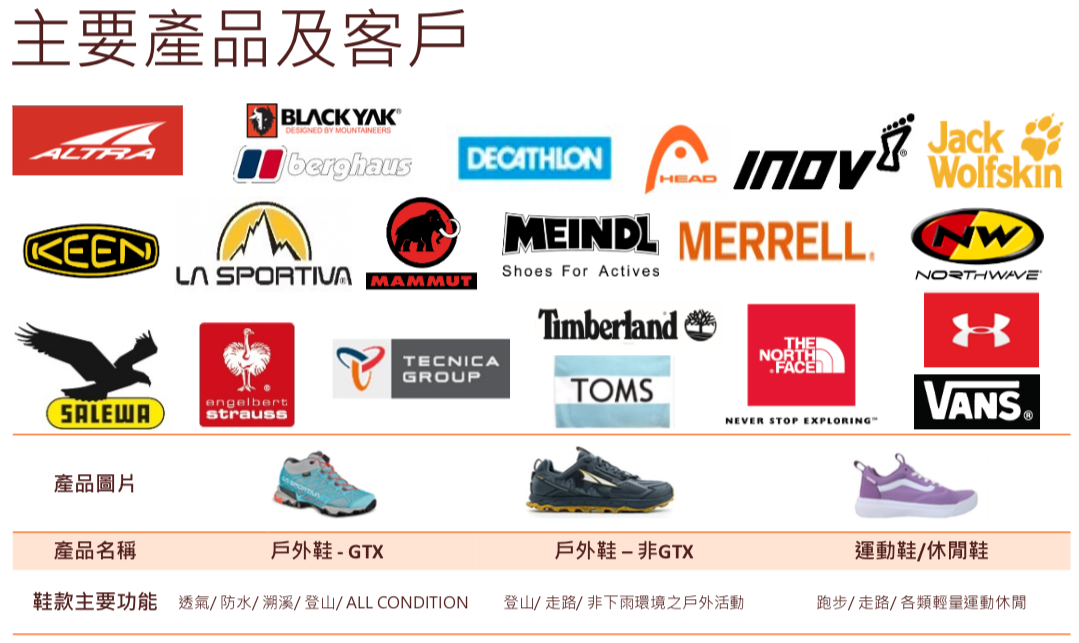 銷售地區分布:銷售地區(品牌客戶指定目的地)的營收占比為大歐洲49.65%、大美洲33.29%。